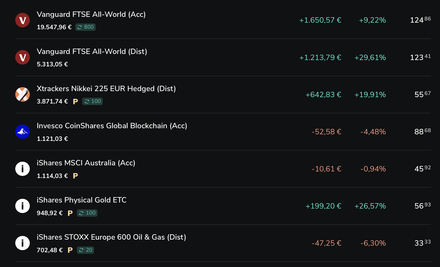 Nun, offensichtlich sind all diese Aktien auch Teil des All-World ETFs, ich "wette" daher doppelt auf deren Verlauf. Ich hatte das anfangs auch eher als "Spielgeld" interpretiert und mir hat es auch Spaß gemacht, mich mit den Firmen, dem aktuellen Marktgeschehen etc. auseinanderzusetzen. Verglichen mit der Rendite aus den ETFs (1 600) hat das Aktiendepot überraschenderweise nicht viel schlechter performt. Klar, letzteres ist deutlich volatiler und kann auch ganz schnell wieder ins rote gehen..