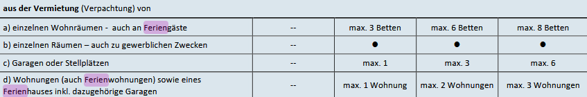 Wir vermieten eine Ferienwohnung (Einliegerwohnung) in unserem selbstgenutzten Einfamilienhaus und dazu ein Ferienhaus neben unserem Wohnhaus wochenweise an Feriengäste. Meine Frau ist zu 70% im Angestelltenverhältnis. Wir haben kein Gewerbe angemeldet und bieten keine Verpflegung etc. an. Das Einkommen aus Vermietung und aus nichtselbständiger Tätigkeit ist etwa 1:1.