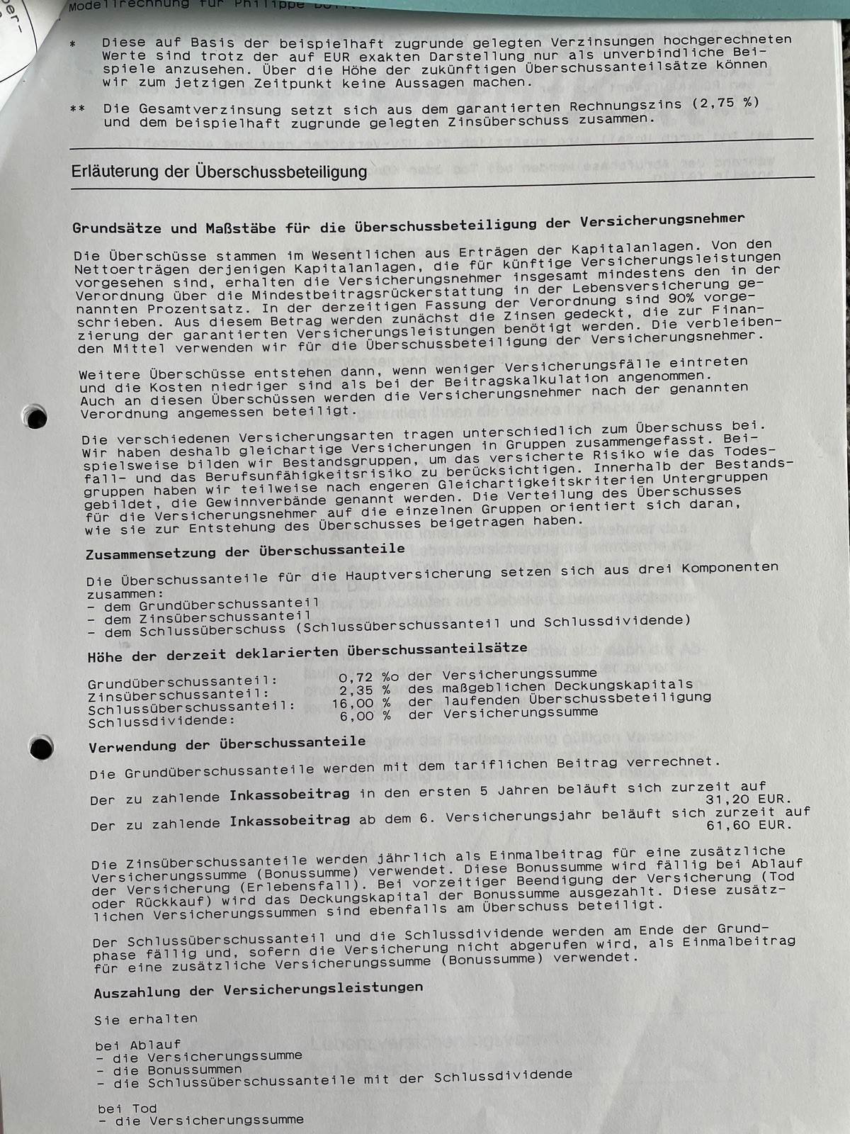 Schlussübeeschuss 16% der laufenden Überschussbeteiligng