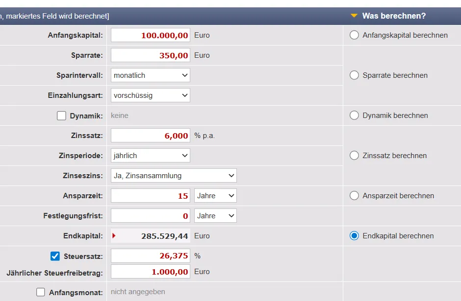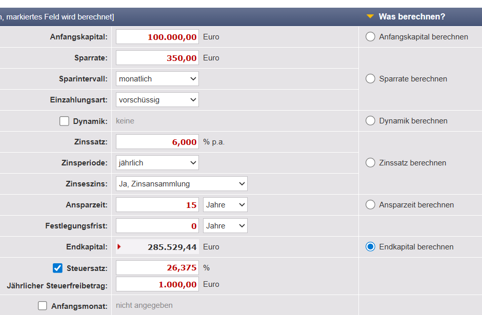 Und wichtig: Kaufkraftverlust (Inflation) -> in 15 Jahren haben die 800 Euro von heute halt nicht mehr die Power von heute...