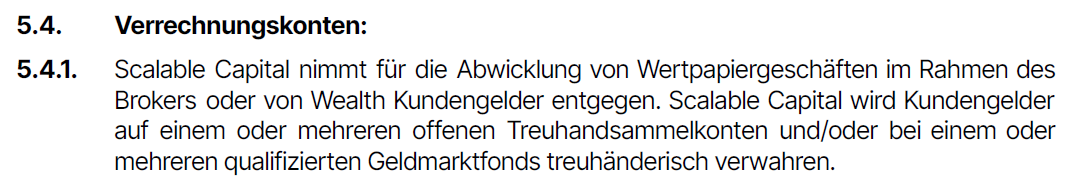 Sowohl das Geld auf den Konten der Partnerbanken als auch das in den Geldmarktfonds wird treuhänderisch verwahrt (siehe Screenshot aus den neuen Kundendokumenten). Durch eine treuhänderische Verwahrung wird sichergestellt, dass die Gelder ausschließlich den Anlegern gehören. Wegen der rechtlichen Zuordnung der Gelder würde ich mir weniger Sorgen machen, ...