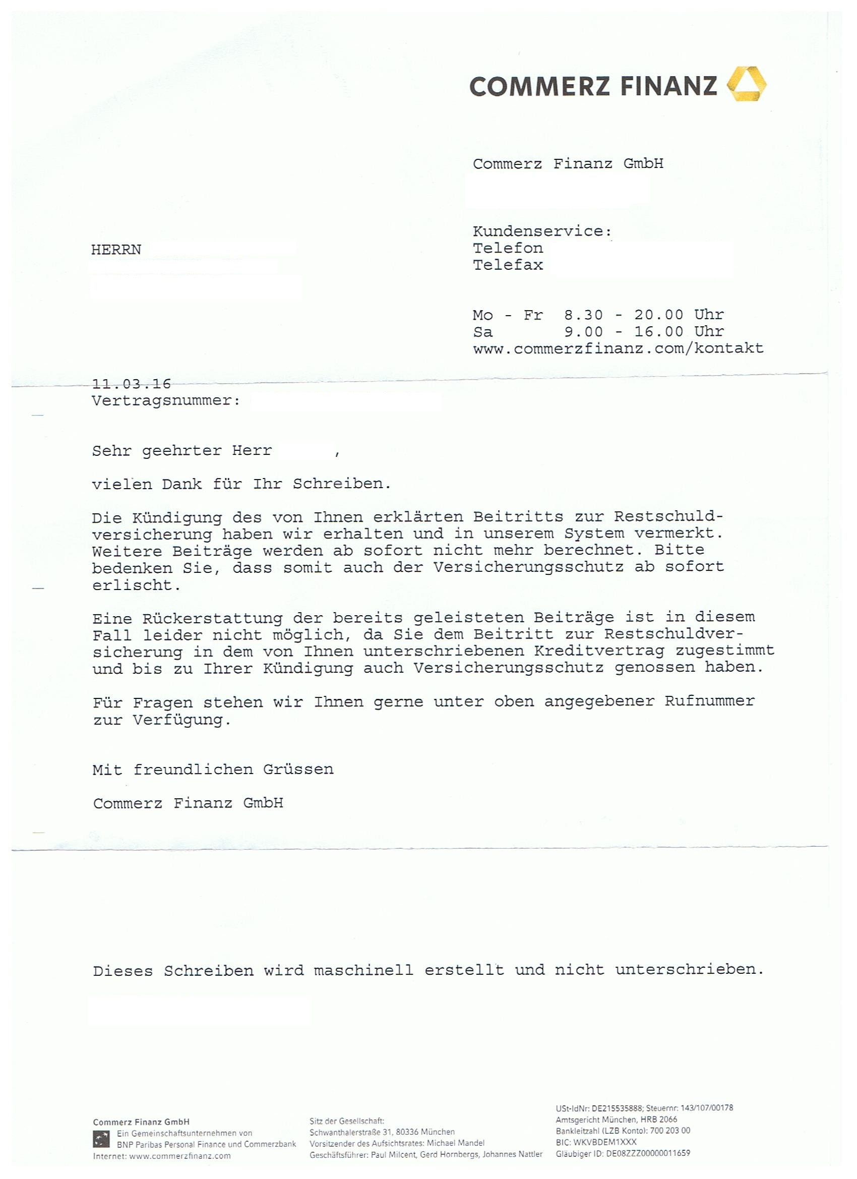 Seit heute liegt mir nunmehr ein Reaktionsschreiben vom Commerz Finanz (siehe Anhang) vor.