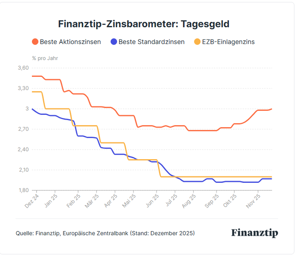 Nächste Woche steht die nächste EZB-Sitzung an – und aktuell sieht alles danach aus, dass der Leitzins für Einlagen erneut bei 2,0 % bleibt. Trotzdem sind in den letzten Wochen vor allem die Aktionszinsen beim Tagesgeld gestiegen: