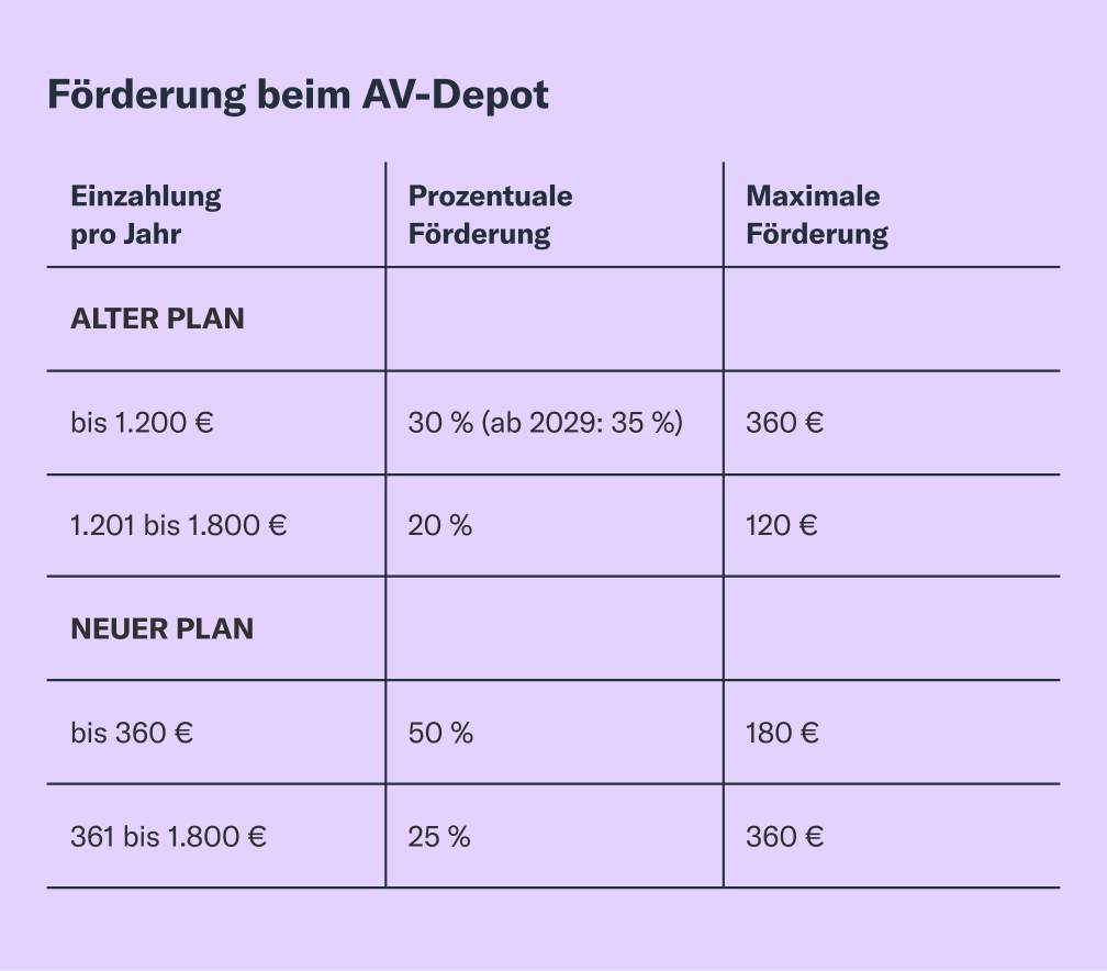 Deshalb ist es jetzt so: Union und SPD haben sich darauf geeinigt, den Deckel zumindest auf 1 % zu senken. Das ist aus unserer Sicht noch immer deutlich zu viel und gilt weiter nur für Standardprodukte. Viele Sparerinnen und Sparer – vor allem diejenigen, die sich weniger gut auskennen – laufen also weiterhin Gefahr, von Anbietern in teure Produkte gelenkt zu werden. Produkte, bei denen auch deutlich mehr als 1 % Kosten anfallen können. Deshalb geben wir nicht auf und setzen uns weiter für eine echte Kostenbremse ein. Vielleicht geht noch was im Bundesrat. Hier kannst Du noch immer für einen wirksamen Kostendeckel unterschreiben. Klar ist aber auch: Unsere Petition zeigt Wirkung. Die höhere Förderung für Menschen mit geringem Einkommen und für Familien war eine weitere zentrale Forderung – und ist nun ein echter Fortschritt gegenüber dem ersten Gesetzesentwurf. Dazu gleich mehr. 2. Staatliches Standardprodukt kommtNeben Depots bei privaten Anbietern will jetzt auch der Staat ein eigenes, also öffentlich organisiertes Altersvorsorgedepot anbieten. Das soll eine günstige und einfache Standardlösung für Unentschlossene und Unerfahrene werden. Dafür sollen die gleichen Regeln wie für die private Konkurrenz gelten. Wie günstig genau diese Lösung sein wird, ist noch unklar. Unsere Hoffnung und Forderung ist, dass es sehr günstig sein wird – unter 0,5 % Kosten – und so auch den Standard am privaten Markt setzt. 3. Auch Selbstständige profitierenBisher war das AV-Depot vor allem für abhängig Beschäftigte geplant, also grob gesagt normale Angestellte und Beamte. Jetzt sollen direkt zum Start ab Anfang 2027 auch Selbstständige ins AV-Depot einzahlen dürfen. Auch wenn Du z. B. als Ärztin oder Arzt einem Versorgungswerk angehörst, wirst Du das geförderte AV-Depot nutzen können. Eine Übersicht, wer alles förderberechtigt ist, findest Du hier in unserem AV-Depot-Ratgeber. 4. Höhere Förderung für kleine SparratenAußerdem wurde das Fördersystem so angepasst, dass kleine Einzahlungen ins AV-Depot stärker gefördert werden als bisher geplant. Das ist vor allem gut für Menschen mit eher kleinem Einkommen, die sich nur geringe Sparraten von bis zu 30 €/Monat leisten können. Aber auch die maximale Fördersumme für alle steigt so etwas an. Heißt konkret: