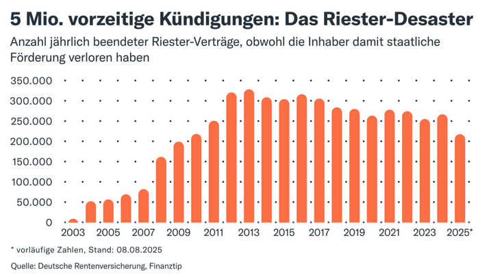 Als staatlich geförderte private Altersvorsorge sollte die „Riester-Rente“ vor fast 25 Jahren eigentlich helfen, die Rentenlücke der Menschen in Deutschland zu schließen und ihnen eine verlässliche Altersvorsorge bieten. Doch dieses Ziel wurde verfehlt: Millionen Kundinnen und Kunden haben am Ende eher Gebühren und Enttäuschungen angesammelt statt Sicherheit fürs Alter. Jetzt will die Bundesregierung mit der sogenannten Frühstartrente einen neuen Versuch unternehmen: Ab 2026 sollen Kinder zwischen sechs und 18 Jahren monatlich 10 € vom Staat in ein Depot bekommen. Doch die Frühstartrente greift zu kurz, denn sie hilft zwar Jüngeren, aber allen, die die Schule verlassen haben, überhaupt nicht bei ihrer Altersvorsorge. Eine Ausweitung des unterstützten Personenkreises ist nicht geplant, eine wirkliche Riester-Reform nicht absehbar. Fünf Lehren für eine echte ReformAus unserer Sicht ist das ein schwerer Fehler. Altersvorsorge darf nicht auf eine Kinderzulage reduziert werden. Eine gerechte Lösung muss bei allen Bürgerinnen und Bürgern ansetzen. Vor allem Berufseinsteigende, Alleinerziehende und Familien brauchen Unterstützung, wenn sie ihre private Altersvorsorge aufbauen sollen. Finanztip fordert deshalb in einem Positionspapier für alle Verbraucherinnen und Verbraucher in Deutschland ein staatlich gefördertes Vorsorgedepot, das allen offensteht – unabhängig vom Alter, ohne komplizierte Anträge oder Einkommensprüfungen. Damit aus den Fehlern der Vergangenheit gelernt wird, braucht es jetzt fünf klare Lehren aus dem Riester-Desaster: 1. Runter mit den Kosten Die Riester-Rente ist vor allem an drei Dingen gescheitert: hohen Verwaltungskosten, Intransparenz und versteckten Provisionen. Damit Du Vertrauen in die Altersvorsorge haben kannst, braucht es einfache, leicht verständliche Produkte. Und die sollten eins sein: günstig. Die jährlichen Gesamtkosten sollten auf maximal 0,5 % gedeckelt sein, inklusive Fondsverwaltung und Depotführung. Dafür bieten sich z. B. Aktien-ETFs an. Von den niedrigen Kosten profitierst vor allem Du. Denn über 30, 40 Jahre Laufzeit macht sich jeder Euro bemerkbar, der tatsächlich in Deine Altersvorsorge fließt und nicht für Kosten draufgeht. 2. Mehr Risiko für alle, die das wollen Bei der Riester-Rente hast Du eine Garantie auf 100 % des eingezahlten Geldes. Jeder Euro, der reinfließt, muss bei Rentenbeginn auch im Vertrag drin sein. Das klingt zunächst super, ist in Wahrheit aber ein Renditekiller. Denn die Anbieter gehen deshalb wenig Risiko ein, und damit sinken Deine Chancen auf Rendite. Du baust auch nicht wirklich Vermögen auf. Eine zeitgemäße Altersvorsorge sollte deshalb mehrere Optionen bieten, mit und ohne Garantien. So kannst Du Deine private Altersvorsorge auf Deine Lebenslage und Risikobereitschaft abstimmen. Und ganz ohne Garantien hättest Du deutlich bessere Chancen, langfristig tatsächlich Vermögen aufzubauen. 3. Du bestimmst, wie die Auszahlung läuft Wenn Du Geld in eine Riester-Rente steckst, bekommst Du eine ziemlich unflexible Altersvorsorge. Dein angespartes Geld wird Dir überwiegend als Rente ausgezahlt – und ist bei Deinem Tod noch Geld im Vertrag, sieht Deine Familie meistens nichts davon. Deshalb sollte eine moderne Altersvorsorge Dir die Möglichkeit geben, Teile des Geldes vor Rentenbeginn zu entnehmen oder zum Start der Rente das Geld auf einmal auszuzahlen statt als monatliche Rente – falls Du z. B. eine Immobilie kaufen willst. Und das Restkapital sollte vererbbar sein. Es ist schließlich Dein hart verdientes Geld. 4. Du bist automatisch dabei, aber kannst auf Wunsch raus Deine Finanzen selbst zu machen, bedeutet am Anfang Arbeit. Die schreckt manche Menschen ab – und sie machen deshalb gar nichts oder zu wenig. Gleichzeitig fehlt vielen das nötige Wissen, um richtig fürs Alter vorzusorgen. Deshalb sollte staatlich geförderte Altersvorsorge als Opt-out-System konzipiert werden: Wer nicht widerspricht, ist automatisch dabei. Das erleichtert allen den Einstieg – vor allem denjenigen, die besonders von Altersarmut bedroht sind: Menschen mit geringem Einkommen oder wenig Finanzbildung. 5. Klare und verständliche Steuerregeln Hast Du Geld in eine Riester-Rente gesteckt, war das eine komplizierte Angelegenheit. Die Förderung war an Einkommensprüfungen, Zulagen und Steuererklärungen gekoppelt – und damit schwer zu verstehen. Auch deshalb war die Riester-Rente nicht besonders beliebt. Sie ist zu bürokratisch und verursacht hohe Beratungskosten. Das muss eine Reform ändern. Die Grundförderung sollte einfach zu verstehen sein und ohne komplizierte Anträge funktionieren. Außerdem solltest Du höhere, optionale Beiträge selbst einzahlen und von der Steuer absetzen können. Menschen mit niedrigem Einkommen sollten gezielt beim Vermögensaufbau unterstützt werden. Und in der Auszahlungsphase sollten die Renten transparent besteuert werden – mit einem Freibetrag für kleine Renten. Die gesetzliche Rente allein wird nicht reichenWas heißt das alles für Dich? Würden diese fünf Punkte umgesetzt, hätten wir alle realistischere Chancen auf ein sicheres Alterseinkommen. Denn die Wahrheit ist: Die gesetzliche Rente allein wird für die meisten von uns nicht ausreichen. Gerade weil wir immer älter werden, wächst der persönliche Bedarf. Und auch wenn wir weiter für bessere Rahmenbedingungen kämpfen und uns für ein staatlich gefördertes Vorsorgedepot für alle einsetzen – die Politik wird Deine Rentenlücke nicht schließen. Deshalb gilt: Fang selbst an. Je früher, desto besser. Jeder Euro, den Du heute in einen breit gestreuten Aktien-ETF investierst, arbeitet über Jahrzehnte für Dich – und verschafft Dir später mehr Freiheit und Sicherheit. 10 bis 20 € im Monat reichen nichtBundeskanzler Friedrich Merz sagte in diesem Sommer, für ein sicheres Alterseinkommen würden 10 bis 20 € im Monat reichen. Damit verharmlost er das Problem, das wir in Deutschland mit d