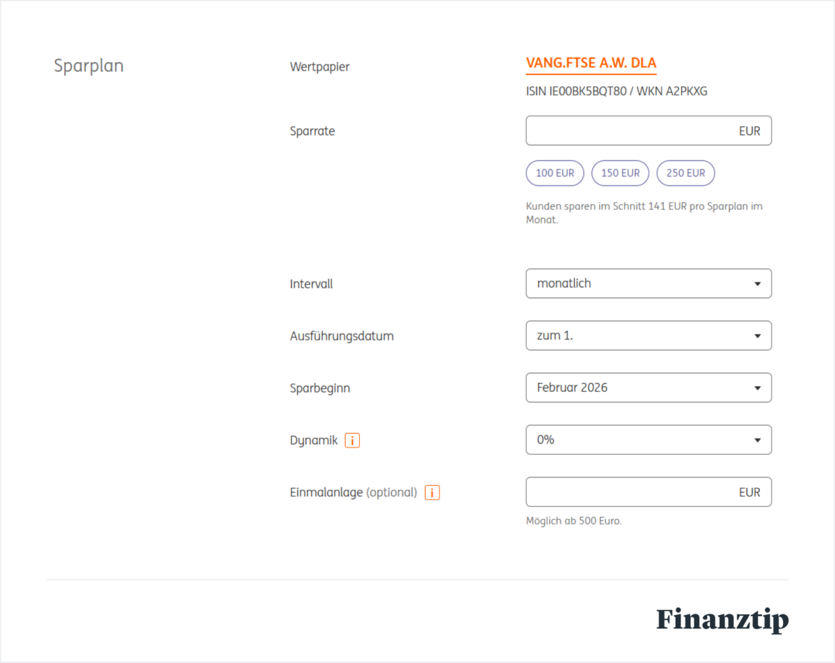 - Alle ETF-Sparpläne gibt es bei der ING ohne Ausführungsgebühr.